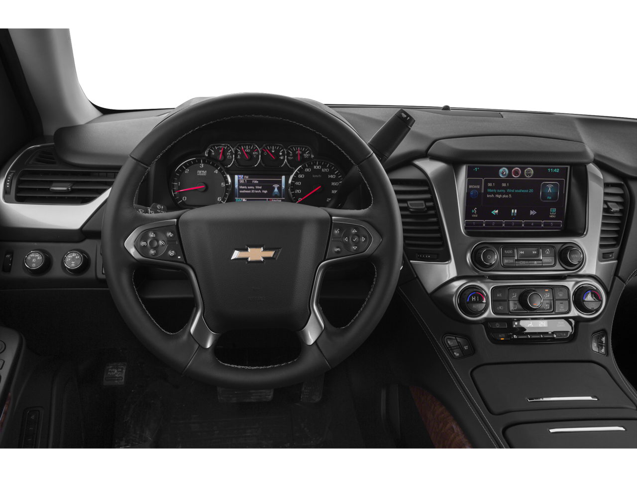 This model keeps you comfortable with Auto Climate. Our dealership has already run the CARFAX report and it is clean. A clean CARFAX is a great asset for resale value in the future. The leather seats in the Chevrolet Tahoe are a must for buyers looking for comfort, durability, and style. This model features a hands-free Bluetooth® phone system. Protect this model from unwanted accidents with a cutting edge backup camera system. The state of the art park assist system will guide you easily into any spot. You'll never again be lost in a crowded city or a country region with the navigation system on this model. It is pure luxury with a heated steering wheel. The vehicle's Lane Departure Warning helps keep you in your lane. Start this 2015 Chevrolet Tahoe from inside with remote start. The Chevrolet Tahoe's Cross-Traffic Alert: Safeguarding you from unexpected traffic when reversing. Engulf yourself with the crystal clear sound of a BOSE sound system in this 2015 Chevrolet Tahoe .